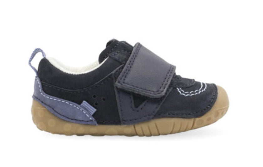 Start-Rite Chuckle Navy Nubuck Leather Shoes are a classic and practical choice for little ones taking their first steps. Designed by Start-Rite, a trusted name in children’s footwear, these first walker shoes combine premium nubuck leather with a supportive yet flexible design to help growing feet develop naturally. The timeless navy colour makes them perfect for both everyday wear and special occasions, while the soft, lightweight construction keeps tiny feet comfortable as they learn to stand, walk, and explore with confidence.