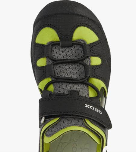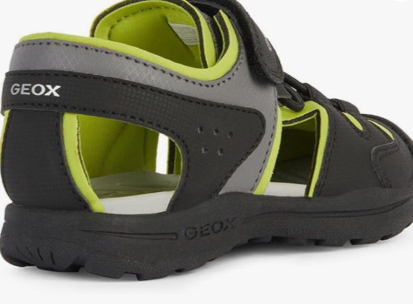 The Geox J Vaniett-B Black and Lime Sandals are a perfect blend of sporty style and everyday comfort for kids on the go. Featuring a sleek black base with bright lime accents, these sandals bring a fresh, energetic look that pairs easily with casual outfits and summer wear.