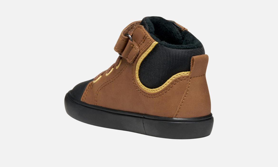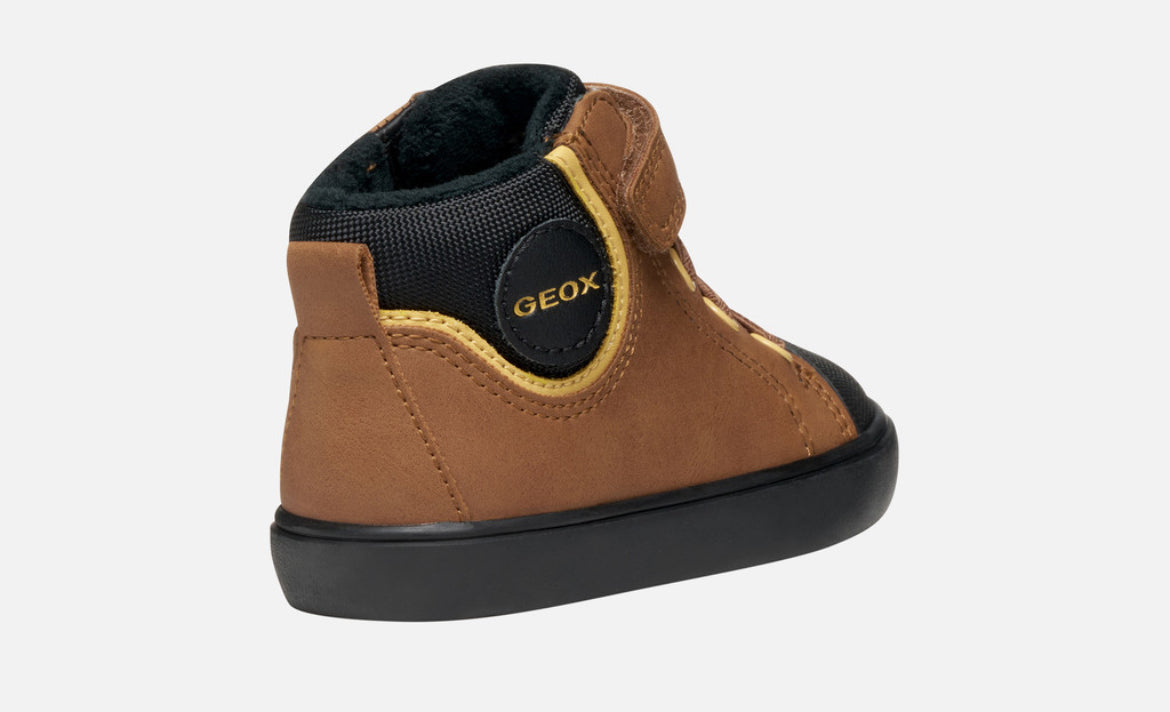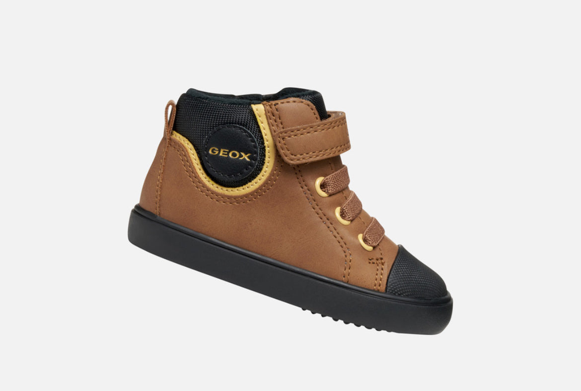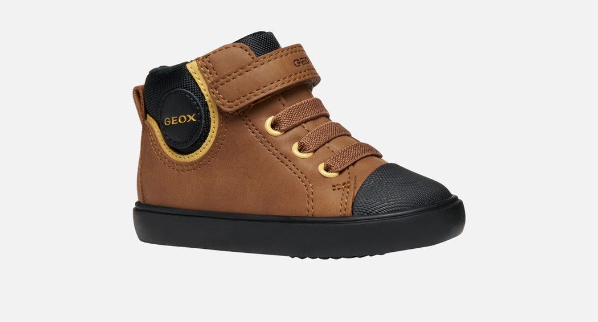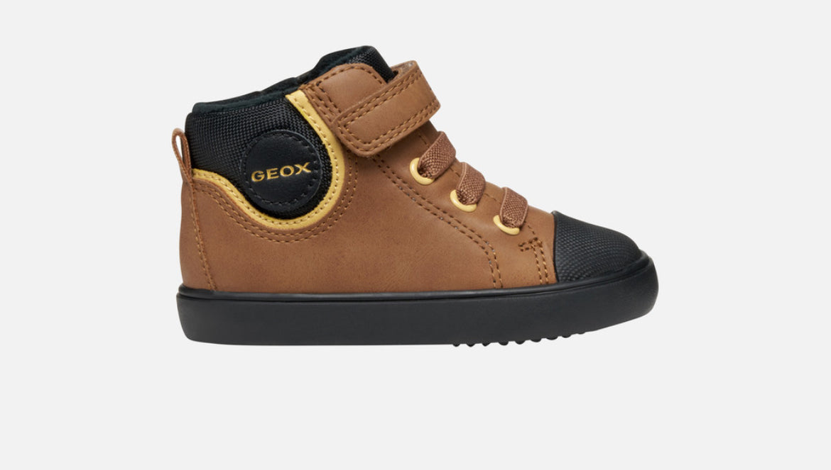 Step up every outfit with these sleek and breathable black trainers from Geox’s beloved Gisli range. Designed with everyday comfort in mind, these boys’ shoes blend a contemporary look with practical features perfect for school, play, and weekend adventures. The mid‑cut silhouette and flexible construction let little feet move naturally, while the breathable sole technology helps keep feet dry and comfortable all day long.