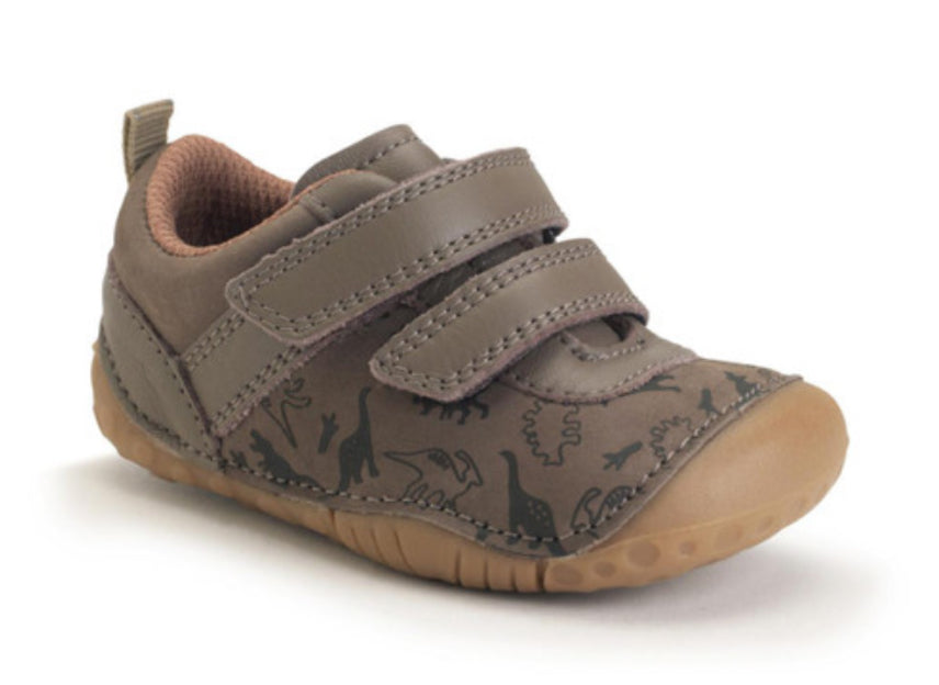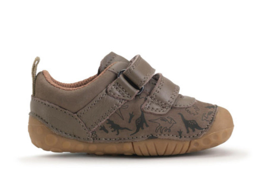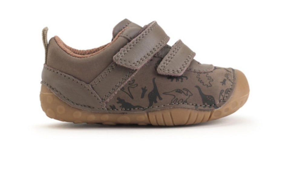 The Start-Rite Roar Velcro Shoes are designed with growing feet in mind. Made from premium taupe nubuck and leather, they offer durability and softness for all-day wear. The double Velcro fastening ensures a secure, adjustable fit, while the lightweight, flexible sole supports natural movement. Finished with a fun dinosaur motif, these shoes make practical footwear exciting for kids.